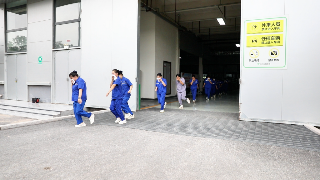 演練模擬公司發(fā)生火災(zāi)場(chǎng)景。隨著警報(bào)聲響起,員工們迅速反應(yīng),按照預(yù)定疏散路線,用濕毛巾捂住口鼻,彎腰低姿,快速、有序地從各個(gè)樓層撤離至安全區(qū)域。整個(gè)疏散過程緊張而不慌亂,充分展現(xiàn)了員工良好的應(yīng)急反應(yīng)能力。