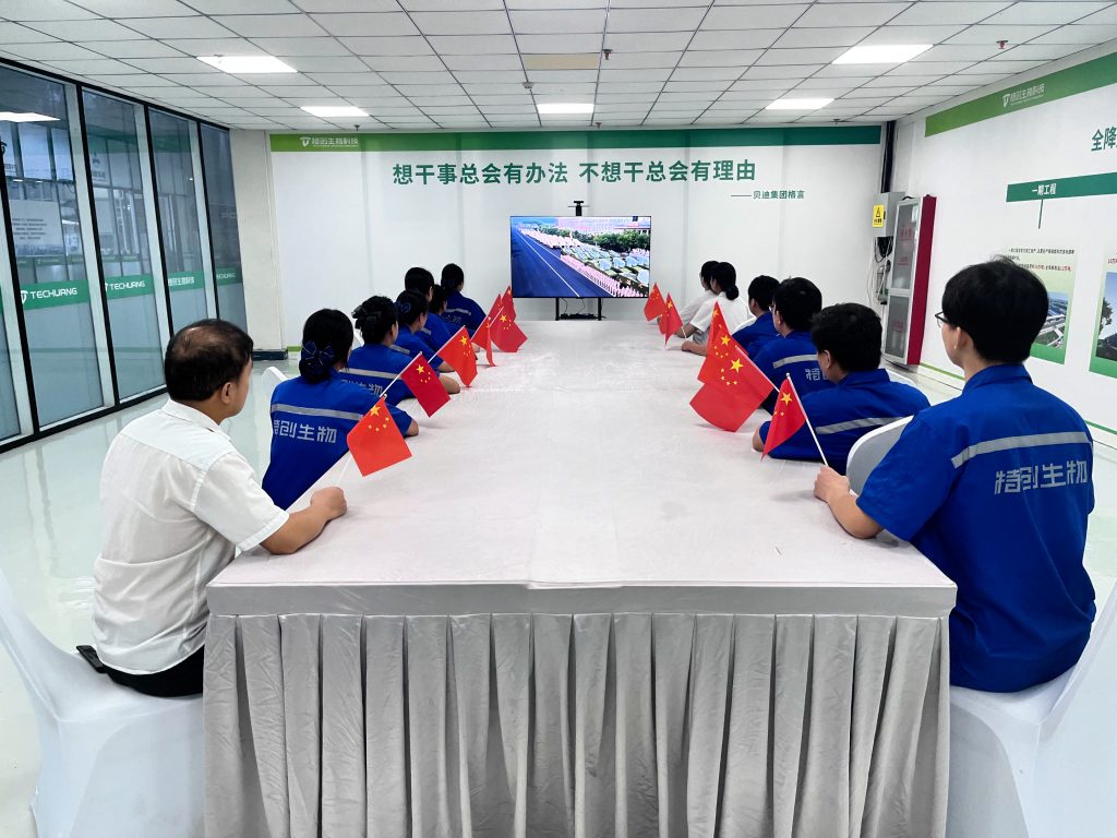9月3日上午,河南特創(chuàng)組織公司員工集中觀看紀(jì)念中國(guó)人民抗日戰(zhàn)爭(zhēng)暨世界反法西斯戰(zhàn)爭(zhēng)勝利80周年閱兵式直播。